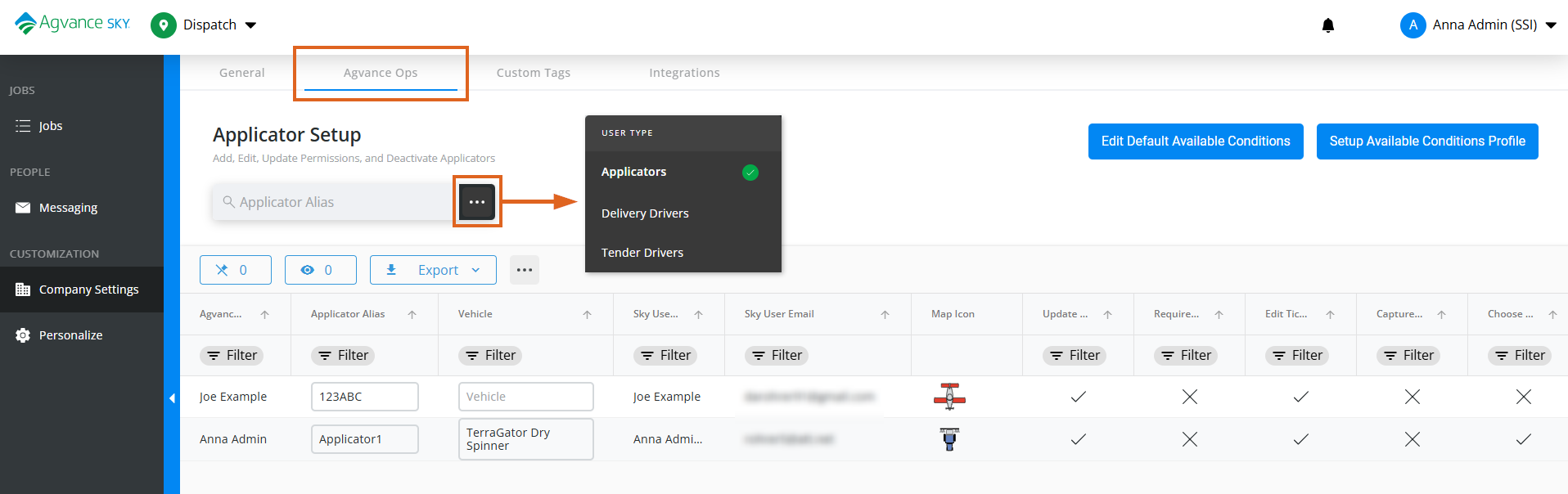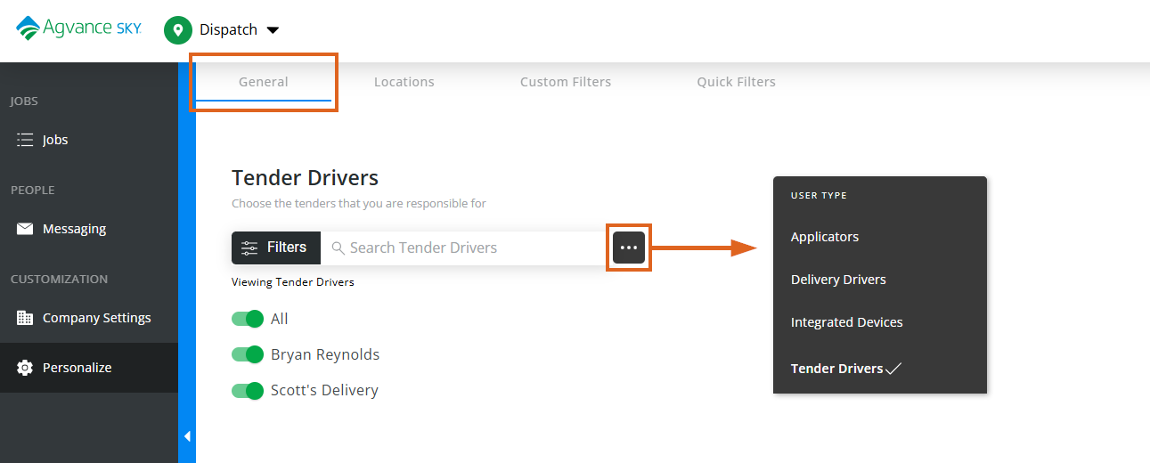 - Tender Drivers are set up on the Agvance Ops tab under Company Settings.