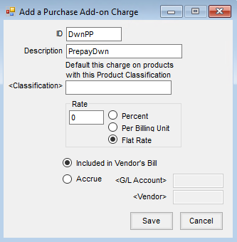 - If an add-on charge for partial vendor prepay doesn’t already exist, go to